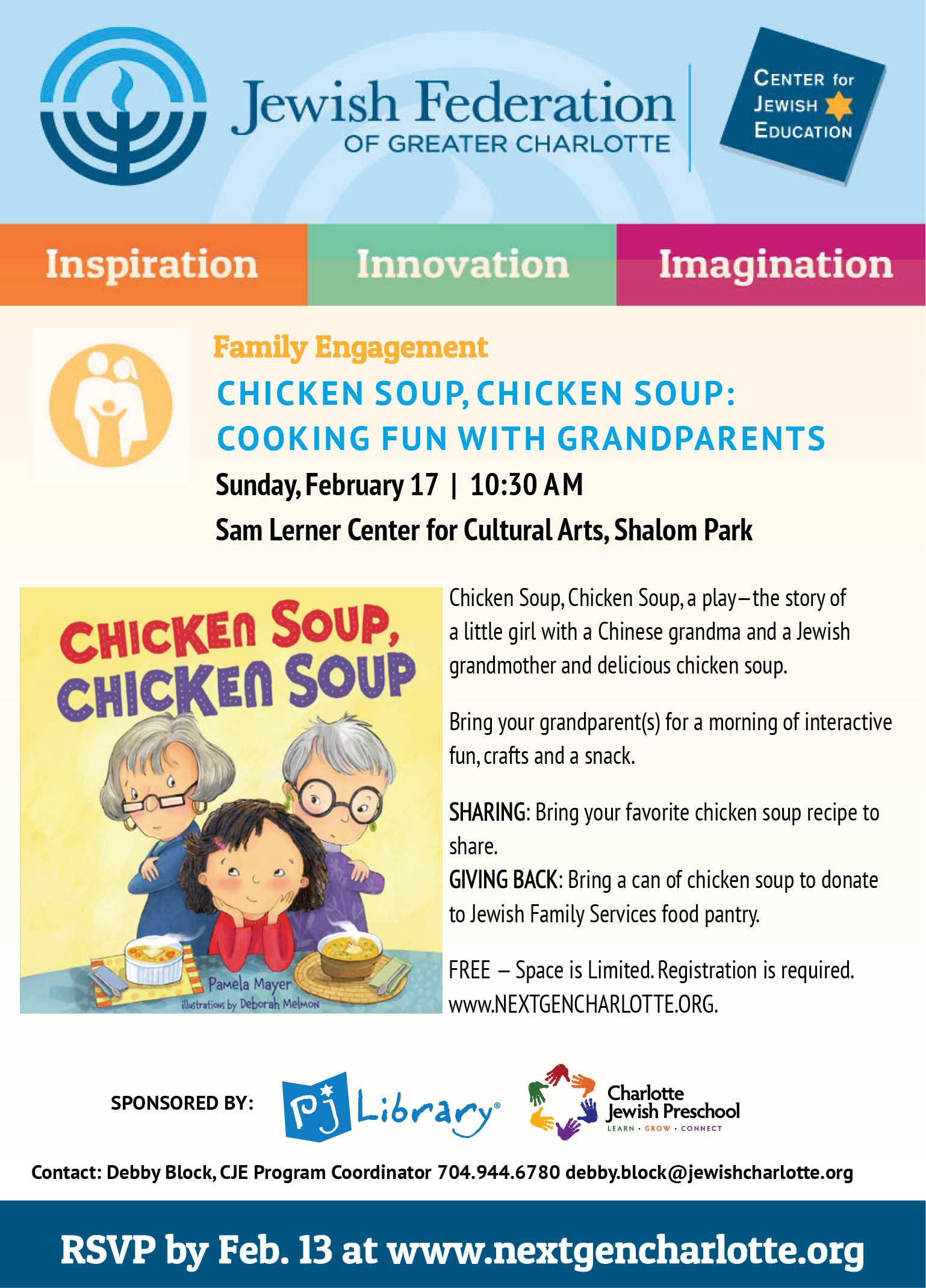 GIVING BACK: Bring a can of chicken soup to donate to Jewish Family Services food pantry.