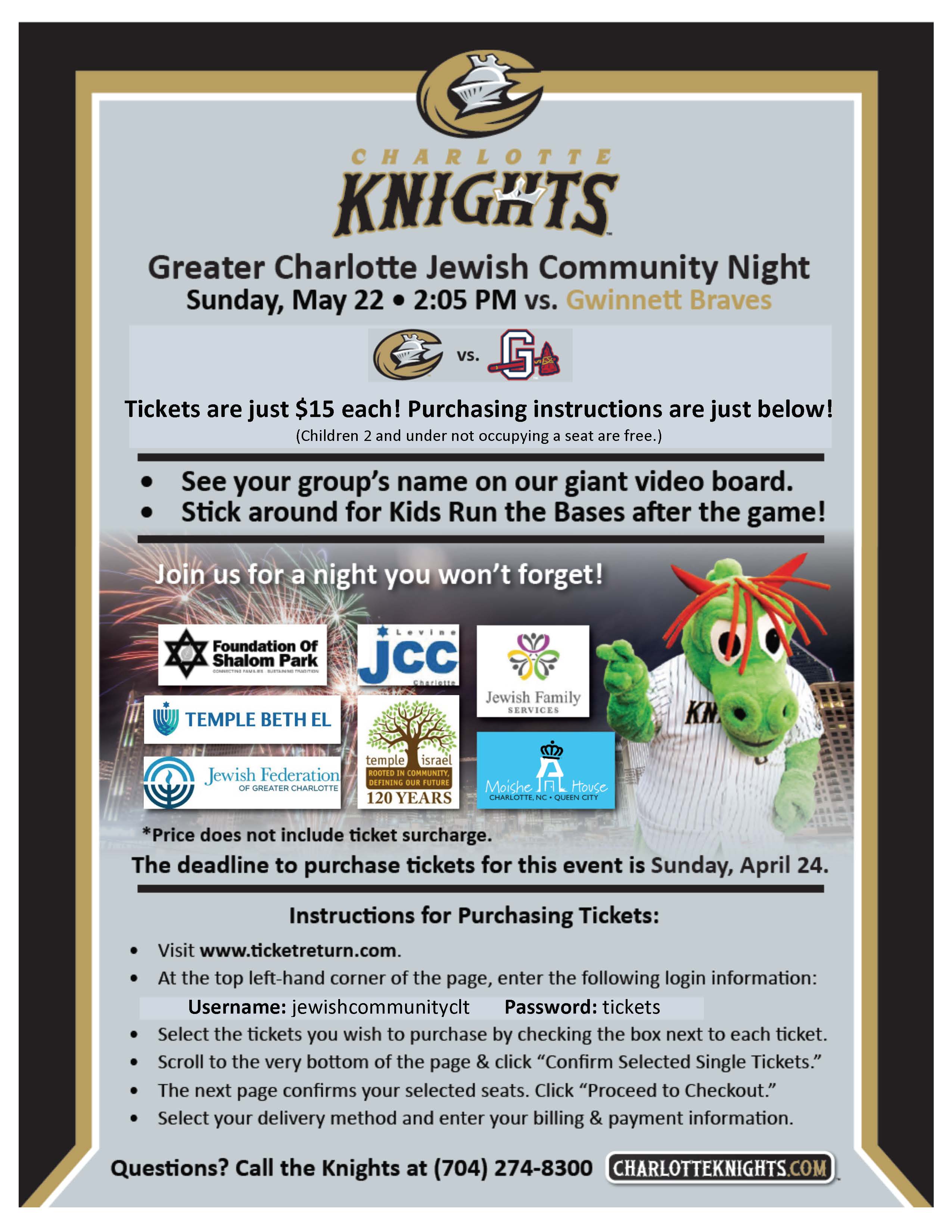 Username: jewishcommunityclt Password: tickets