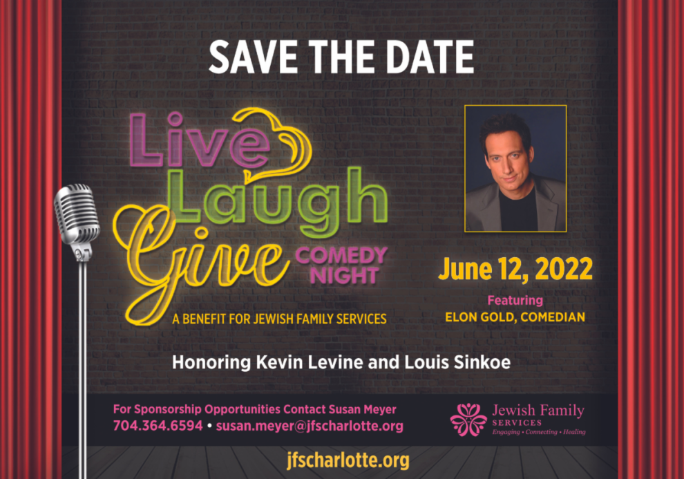 Jewish Family Services signature fundraiser honoring Kevin Levine and Louis Sinkoe. Elon Gold will be the headliner. The event will be held at Temple Beth El.