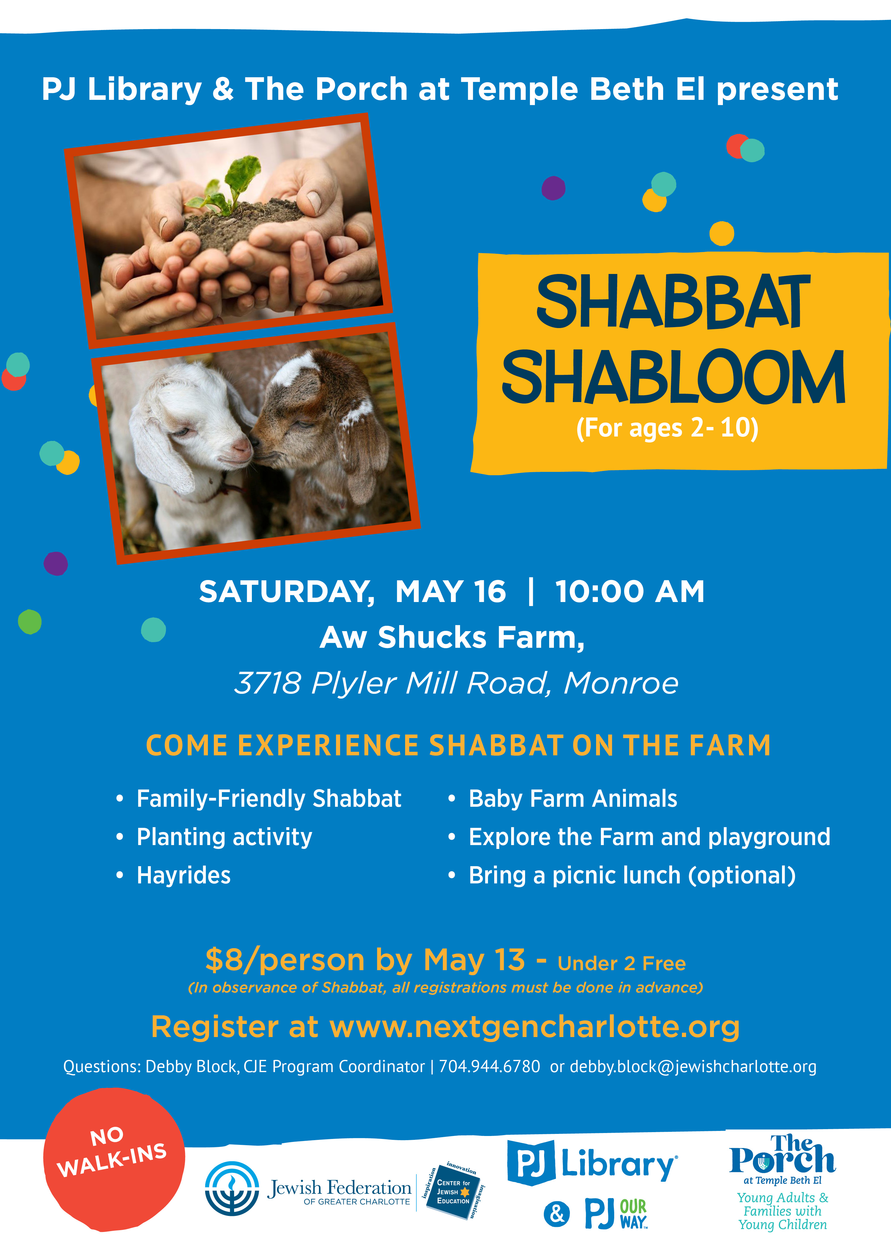 Questions: Debby Block or call 704-944-6780
